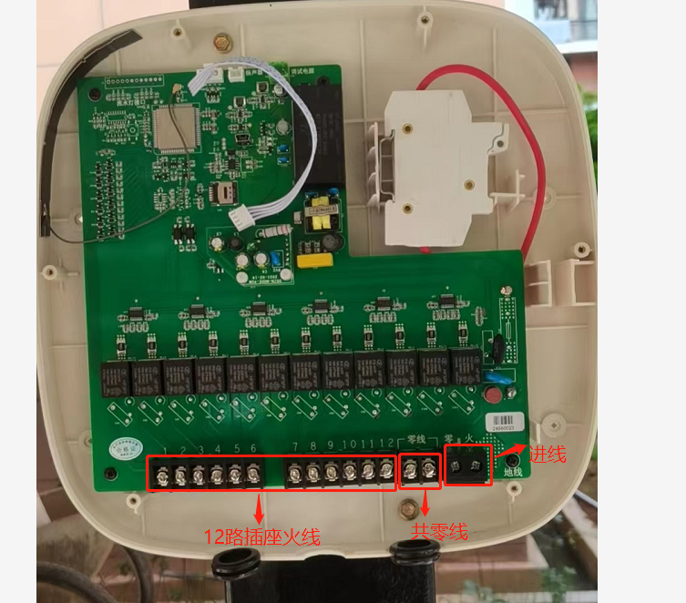 一、设备以下安装接线原理、方法及标准  注意事项 1、十路机和十二路机,主机进线和插座出线独立,单台设备主机进线建议最小4平方 2、插座火线并联接出,插座火线建议最小1.5平方国标铜芯线 3、插座零线串联接出,接在插座出线公共零线端,建议最小2.5平方国标铜芯线 4、地线可接可不接,不接地线不影响使用,接上地线是个保障 5、十二路设备接线原理与十路机类似,多两个插口 6、蓝牙单控、双控设备和汽车桩,只有三根线(零、火、地线),直接接上对应进线的零火线和地线即可,汽车桩和双控大功率设备必须接地线且可靠接地 7、汽车桩单台设备进线最小6平方,国标铜芯线 接线实拍图    常见设备安装视频 1、成品架安装-方小白安家记 https://channels.weixin.qq.com/web/pages/feed?eid=export%2FUzFfAgtgekIEAQAAAAAAkw0qwIJJ6wAAAAstQy6ubaLX4KHWvLEZgBPEyIM0E30RbeT8zNPgMIB64-sQEvnDDSIBJVoV9lMx 2、设备安装上墙-跟着老师傅学安装 https://channels.weixin.qq.com/web/pages/feed?eid=export%2FUzFfAgtgekIEAQAAAAAABCsSen28BgAAAAstQy6ubaLX4KHWvLEZgBPE2oMINzV4fb_8zNPgMIDBSrZIa5n6Bhfdu4AMMbBa 3、汽车桩安装-3根线7颗螺丝搞定汽车桩安装 https://channels.weixin.qq.com/web/pages/feed?eid=export%2FUzFfAgtgekIEAQAAAAAA2loXGv5HcAAAAAstQy6ubaLX4KHWvLEZgBPE1YNANkwxXoL8zNPgMIB9PGtSc10Q_JkJZ93d6oOY 二、设备功率大小核算 1、十路机单口最大支持1200W,整机最大功率4500W 2、十二路机单口最大支持1200W,整机最大功率7000W 3、双控设备单口最大支持3500W,整机最大功率5000W 4、汽车桩单口最大支持7000W,整机最大功率7000W 5、两轮车充电平均功率在220W-300W之间,因城市不同,功率有差异 6、单个电车充电功率请参见电动车充电器标注铭牌,所见充电器输出功率 7、整条线路的负载总功率,可根据设备数量,设备类型,预估使用率,预估充电平均功率,满负荷充电概率等综合计算 8、常见设备安装用线建议及自查表 三、常见线材型号、线径大小   四、常见空开型号及释义 目前家庭使用DZ系列的空气开关(带漏电保护的小型断路器), 常见的有以下型号/规格:C16、 C25、C32、C40、C60、C80、C100、C120等规格, 其中C表示脱扣电流,即起跳电流,例如C32表示起跳电流为32安 空气开关型号:D代表动力,C代表照明 型号上升一般是6、10、16、20、25、32、40、50、63、80、100、  备注:因电网电路中往往出现不定时的电压波动情况,建议线路开端增加过欠压保护器, 保护整体线路电压正常,保护设备及电器  五、常见施工环境  施工配套--常见车棚材质及特点 1、彩钢瓦车棚 顶棚上是镀锌板,下封板是镀锌板喷涂的,安装采用拼接式。如果安装离卧室近,会影响到正常生活和休息, 因为下雨的时候噪音比较大,综合造价120--150元/平方米 2、阳光板车棚 顶部材料是阳光板,阳光板是空心的,耐冲击,可以防止在运输、安装使用过程中破碎,但在阳光的暴晒下 容易老化,综合造价200--240元/平方米 3、铝合金车棚 顶部材料是耐力板,抗冲击性强,强度超过亚克力板和强化玻璃数倍,坚固安全。板材加工性佳,可塑性强, 骨架是用高强度的铝合金,铝合金材质不易腐蚀,不生锈,使用寿命长,综合造价300--350元/平方米 4、 ![=video]()膜结构车棚 主要是由膜结构制成,造型美观、寿命长久,高强度加厚专用钢架,强度高。在阳光下曝晒不会产生黄变、 雾化等,建筑膜才的冲击强度是普通玻璃的250-300倍,是亚克力板材的20-30倍,是钢化玻璃的2倍,几乎 没有断裂的危险性,有“不破玻璃”和“响钢”之美称,综合造价300--400元/平方米